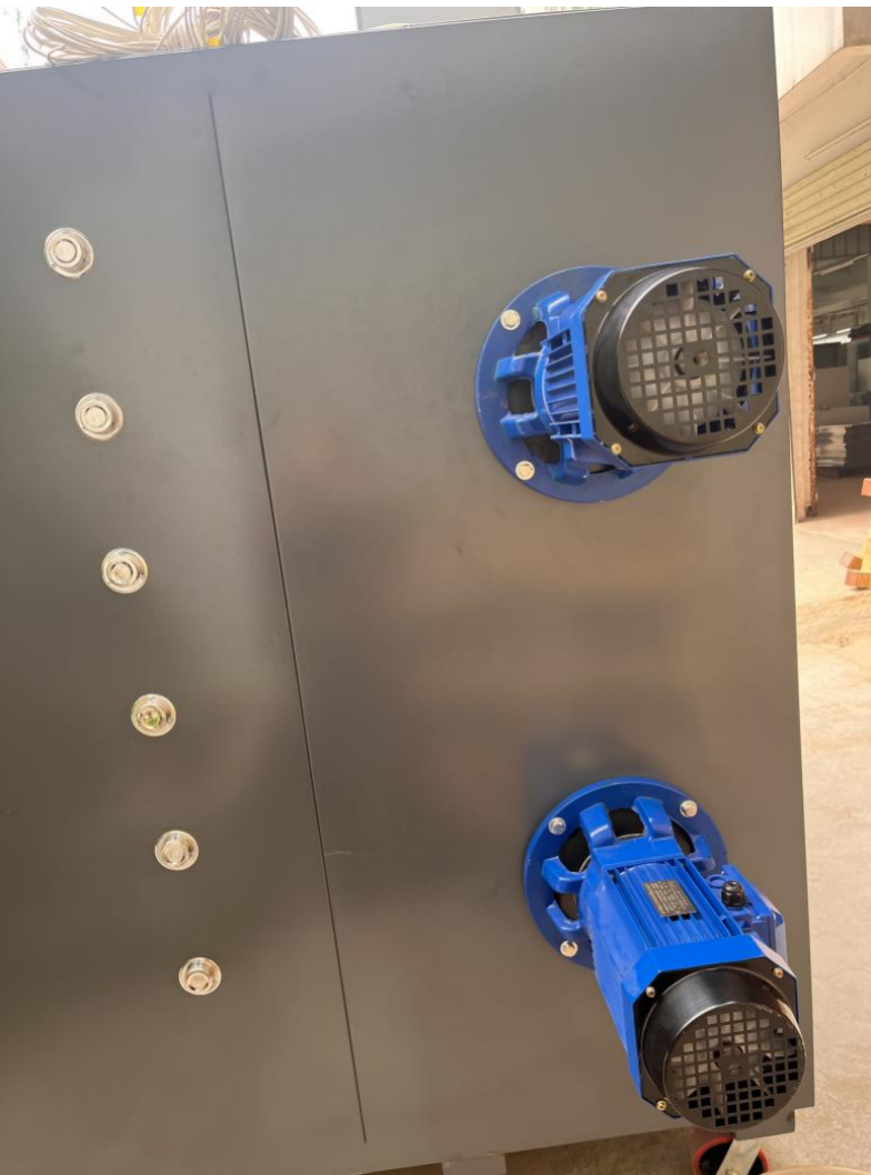 Doce tubos de calefacción de acero inoxidable. Los primeros 250mm en la parte delantera de cada tubo no son de calefacción. Cada tubo tiene una potencia de 2500 W. Equipado con motores duales de alta potencia e impulsores de aire, con dibujos y parámetros confirmados por el cliente.